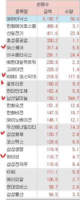KOSPI에서 외국인은 -4,411억 원 순매도, 기관은 -9,535억 원 순매도했음. KOSDAQ에서도 외국인과 기관이 각각 -1,225억 원, -984억 원 순매도 했음. 외국인은 KOSPI에서 유통과 보험 업종을 매수했고, 건설과 전기/전자 업종을 매도