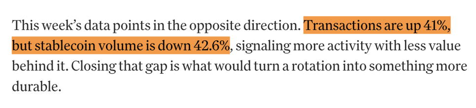 하지만 이더리움과 비트마인의 경우 무조건 낙관하기에는 조심스러울 수도 있습니다. 이더리움 네트워크 거래량은 지난주보다 41%나 폭증했지만, 내용을 뜯어보면 조금 찝찝한 부분이 있습니다.