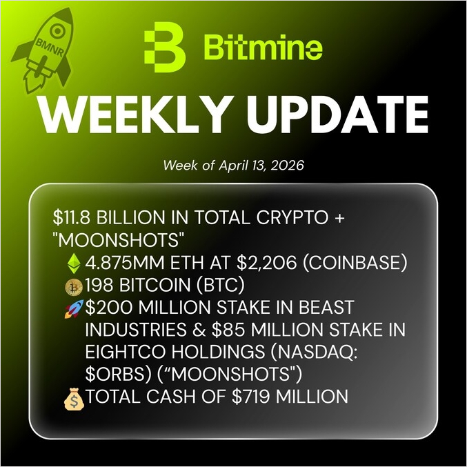 이런 상황에서 톰 리(Tom Lee)가 이끄는 비트마인(Bitmine)사가 불을 지폈습니다. 이번 주에만 무려 1억 5,700만 달러어치(약 71,524 ETH)를 추가로 매수한 건데요. 이 회사가 보유한 이더리움은 이제 전체 공급량의 4%에 육박합니다.