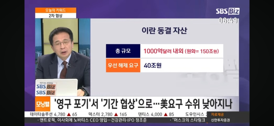 경제재재 풀고 배상금을 주는 것은 동의할 수 없지만 이란 동결 자산 푸는 것을 이야기 하고 있어요.