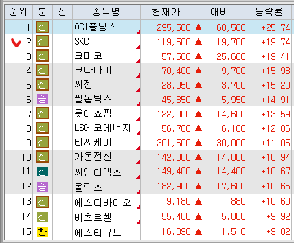 스페이스X향 폴리실리콘 장기 공급 계약에 따른 기대감에 OCI홀딩스가 오름세를 이어갔음