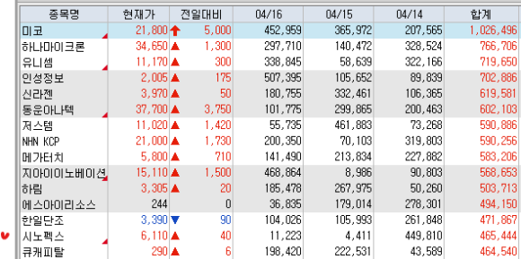 미코 : 반도체 업황 호조 지속 및 SK하이닉스 오는 6~7월 美 ADR 상장 추진 소식, TSMC 1분기 순이익 사상 최대 기록 등에 반도체 관련주 상승 속 급등