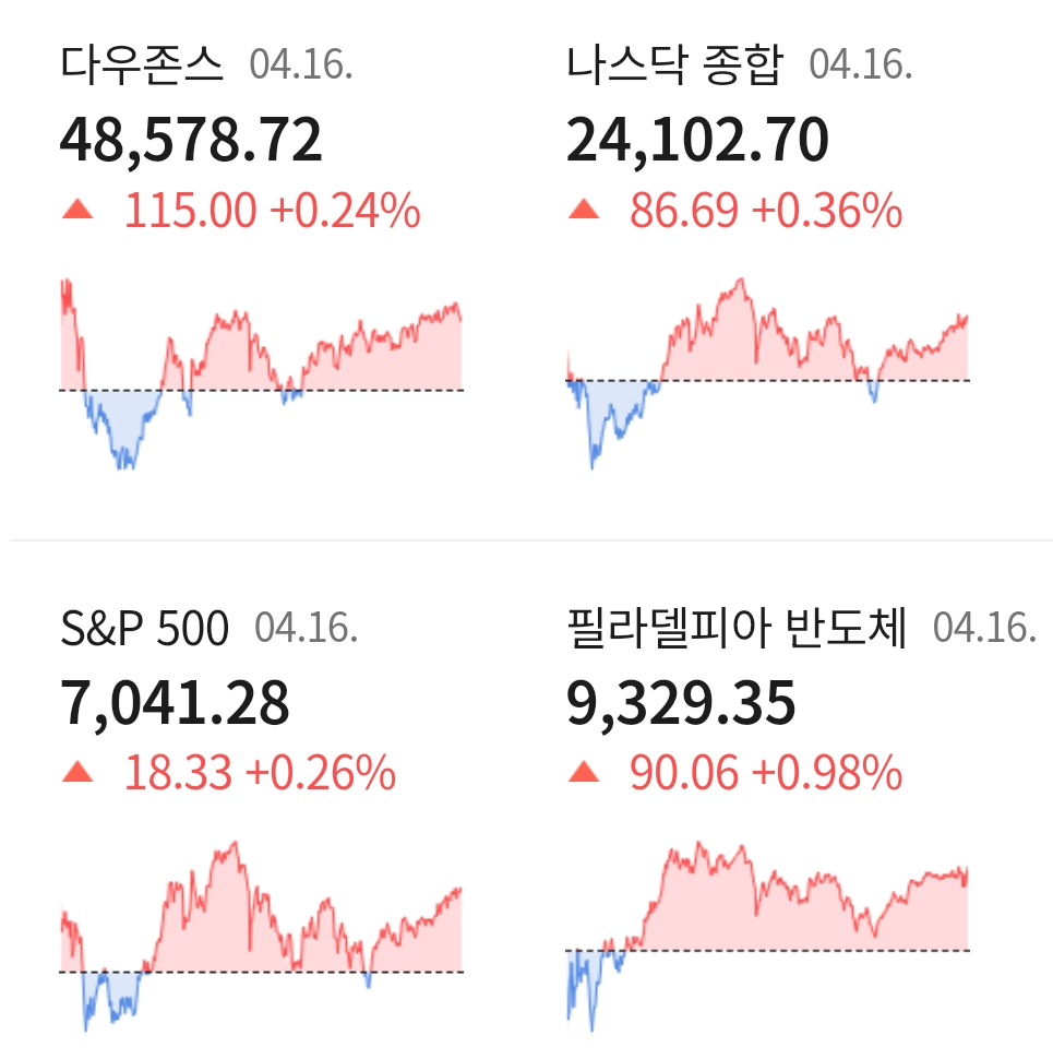 다우지수는 전일 대비 +0.24% 오른 48,578.72에 거래를 마쳤으며, 대형주 중심의 S&P500 지수는 전장 대비 +0.26% 상승한 7,041.28에 장을 마감하였습니다. 기술주 중심의 나스닥 지수는 +0.36% 오른 24,102.07에 거래를 마치며 장을 마감하였습니다.