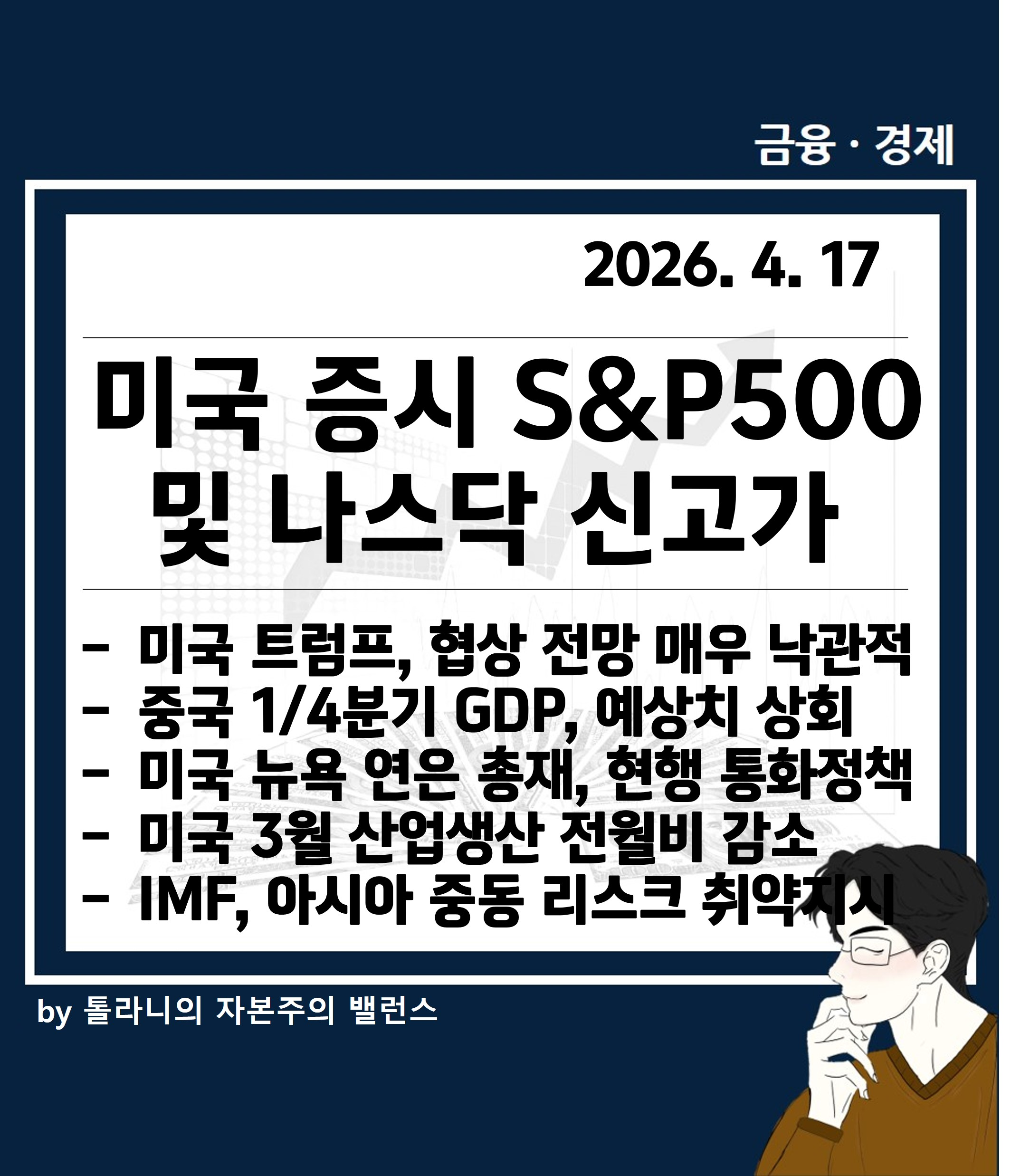 지금까지 '미국 증시 S&P500 및 나스닥 신고가, 중국 1분기 GDP 예상치 상회 등 주요 국가 경제·금융 동향' 관련하여 알아보았는데요.