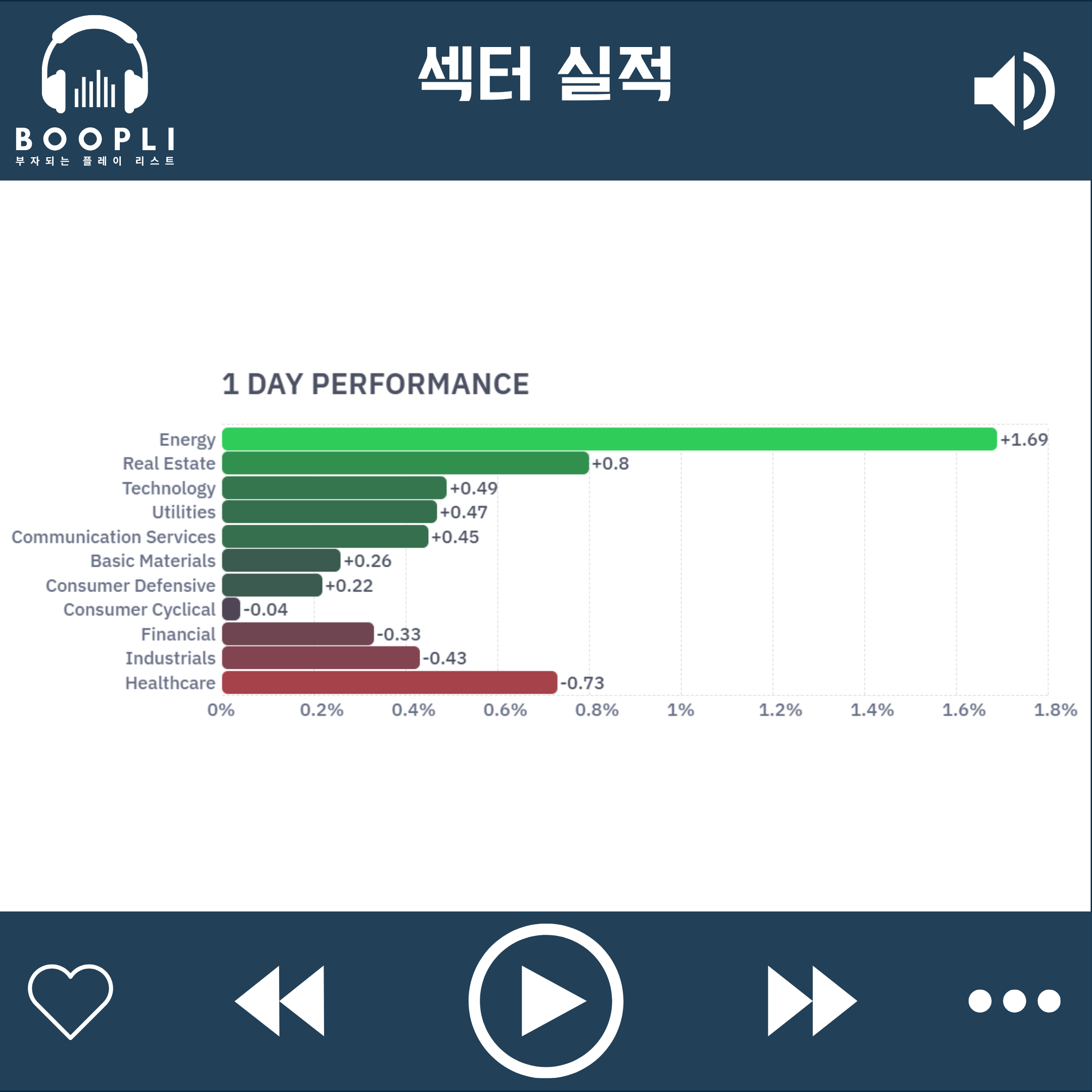종전 낙관에도 유가가 상승하면서 에너지 섹터가 상승 주도, 이어서 부동산 섹터도 강세