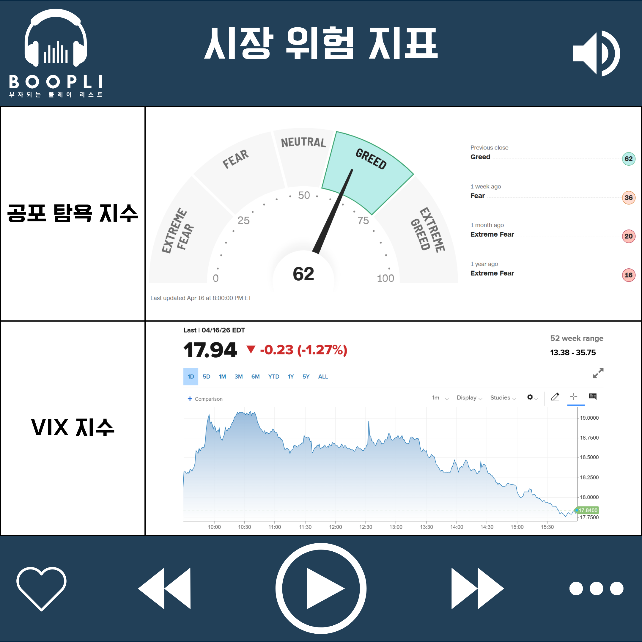 시장 변동성을 나타내는 VIX 지수는 하락하면서 변동성 완화