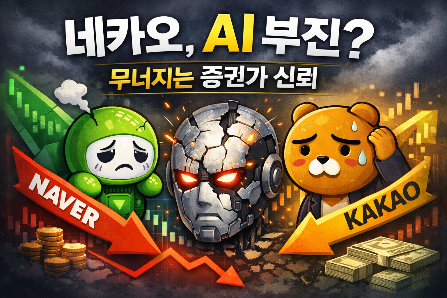 최근 국내 대표 인터넷 기업 네이버와 카카오(일명 ‘네카오’)에 대한 증권가의 평가가 눈에 띄게 낮아지고 있습니다. 인공지능(AI) 분야에서 뚜렷한 성과를 내지 못하면서 투자자들의 기대가 꺾이고 있기 때문입니다.