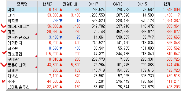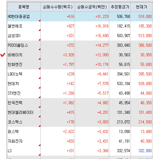 <연기금 순매수 상위 종목>