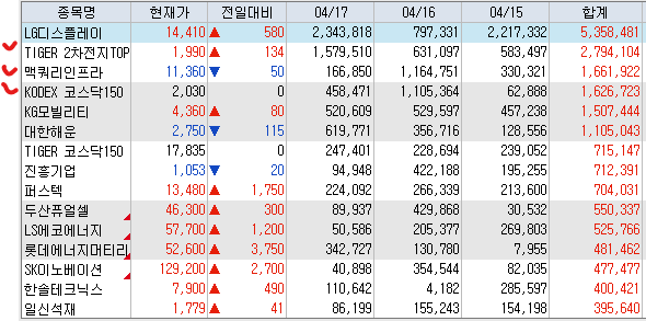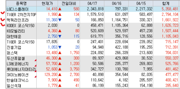 매수 : Tiger미국30년국채커버드콜액티브 맥쿼리인프라 Kodex200타겟위클리커버드콜 Tiger배당커버드콜액티브 Tiger반도체 Tiger반도체TOP10레버리지 아이씨티케이 AP위성 Tiger2차전지TOp10레버리지 Tiger2차전지테마