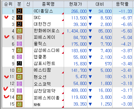 한편, 반도체 대표주가 하락