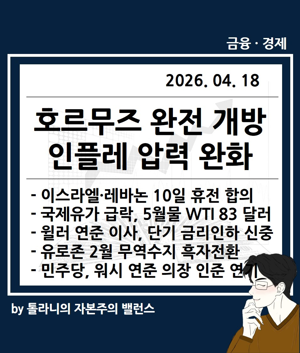 지금까지 '호르무즈 완전 개방 선언에 미국 증시 급등, 인플레이션 압력 완화 금리 경로 영향 등 주요 국가 경제·금융 동향' 관련하여 알아보았는데요.