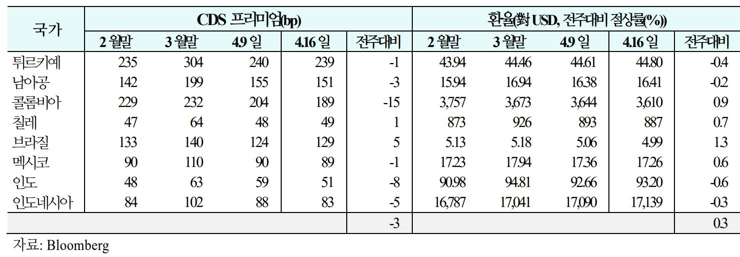 03. 주간 신흥국 CDS 및 환율 동향('26.4.10(금) ~ 4.16(목))