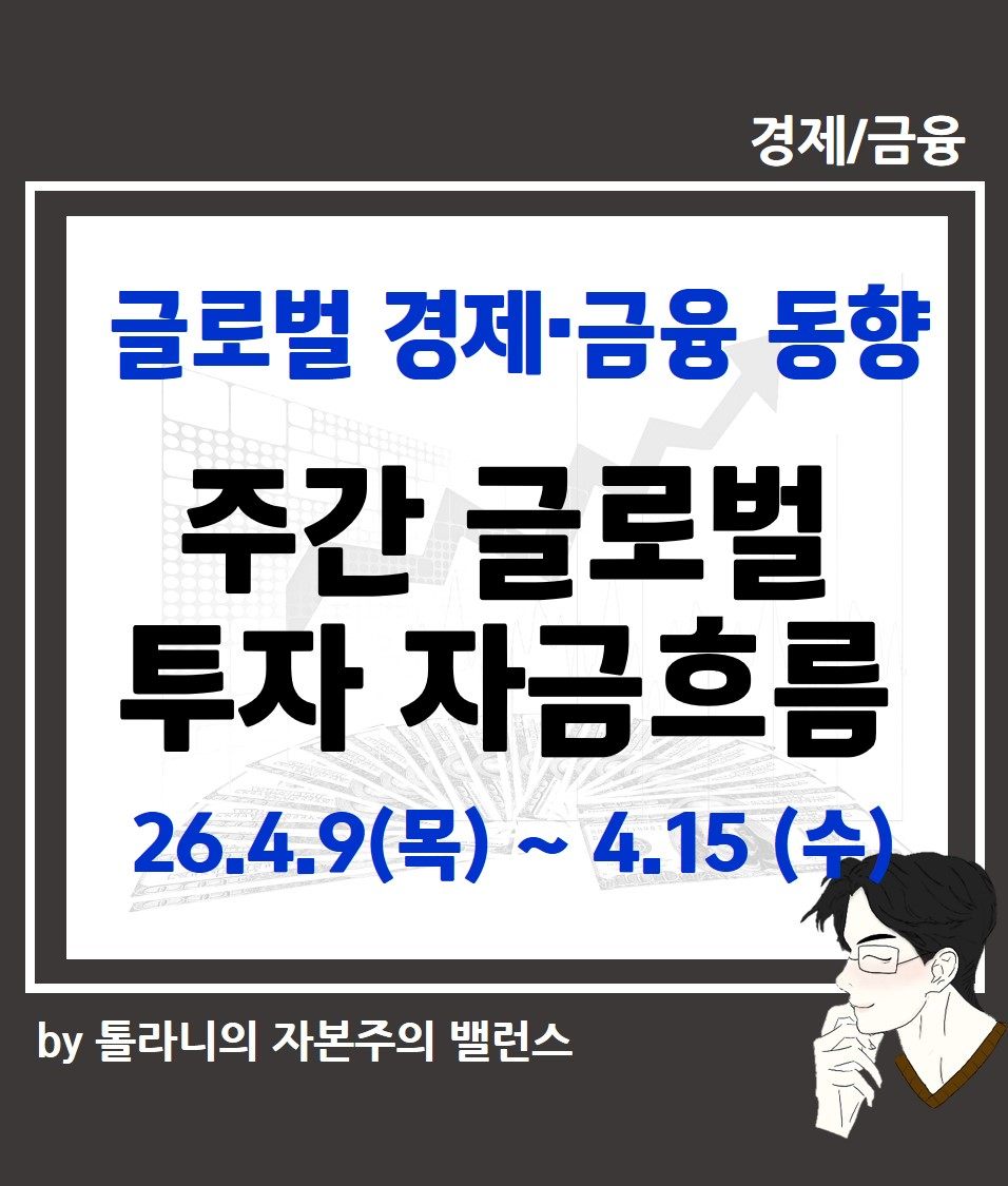 이에 ‘주간 글로벌 투자 자금 흐름(26.4.9(목) ~ 4.15(수))’ 관련하여 국제금융센터 보고서를 통해 좀 더 자세히 알아보도록 하겠습니다.