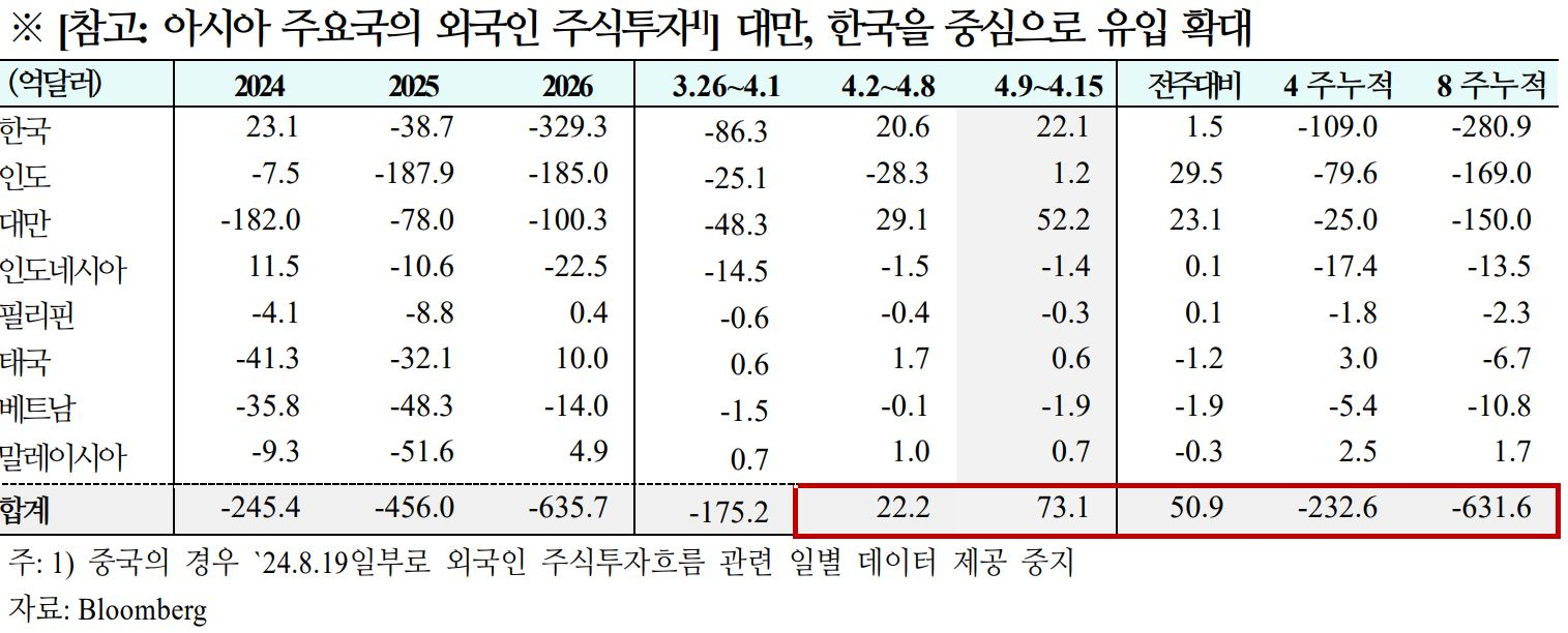 주간 글로벌 자금흐름('26.4.9 (목) ~ 4.15 (수))