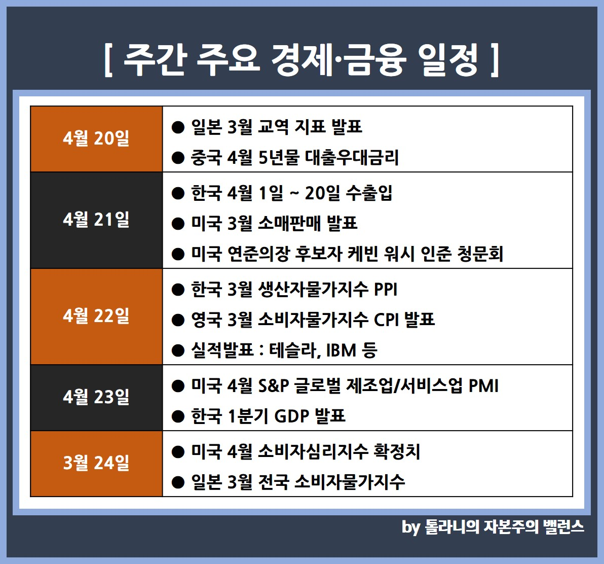 5) 한국 1분기 GDP 반등 가능성. 미국 주요 기업 실적 발표도 관심