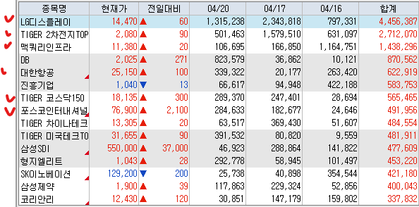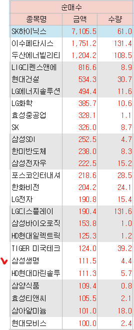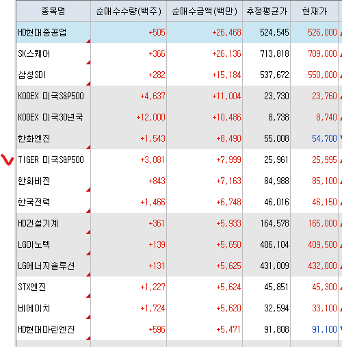 매수 : 크레버스 맥쿼리인프라 Tiger미국S&P500타겟데일리커버드콜 Tiger반도체 Tiger반도체TOP10레버리지 Tiger2차전지 Tiger2차전지TOP10레버리지