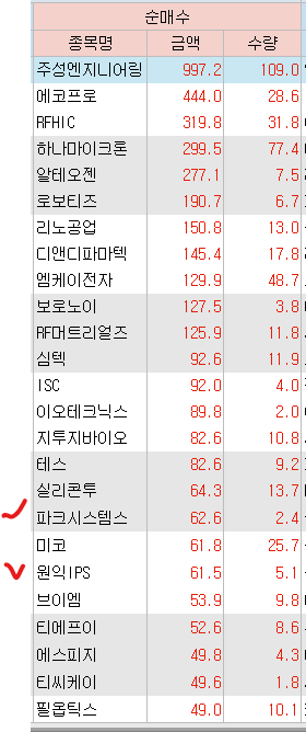 매도 : 삼일제약 코스모신소재 호텔신라 삼성에피스홀딩스 시노펙스 주성엔지니어링(+38.31%) 폴라리스오피스 기가레인 산일전기(+44.36%) 빛과전자(+105.24%) 아바코 에코프로 아톤 심텍(+50.83%) 레이크머티리얼즈 HD현대중공업 스피어 인벤티지랩 엔젤로보틱스 지투지바이오 KODEX미국AI테크TOP10타겟커버드콜