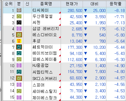 반면 엔터, 건설, 자동차, S/W 업종이 약세