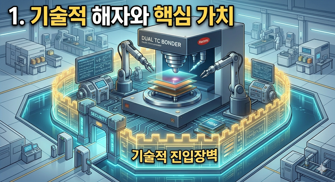 동사의 주력 장비인 듀얼 TC 본더는 이 수직 적층 공정에서 대체 불가능한 지위를 굳히고 있습니다. 수많은 시행착오의 결과로 축적된 열 제어 기술력과 정밀도는 후발 주자들이 단기간에 따라잡기 힘든 진입 장벽을 형성했습니다. HBM3E를 넘어 차세대 HBM4로 넘어가는 길목에서도, 이 굳건한 기술적 해자는 기업 가치를 방어하는 든든한 방패 역할을 합니다.