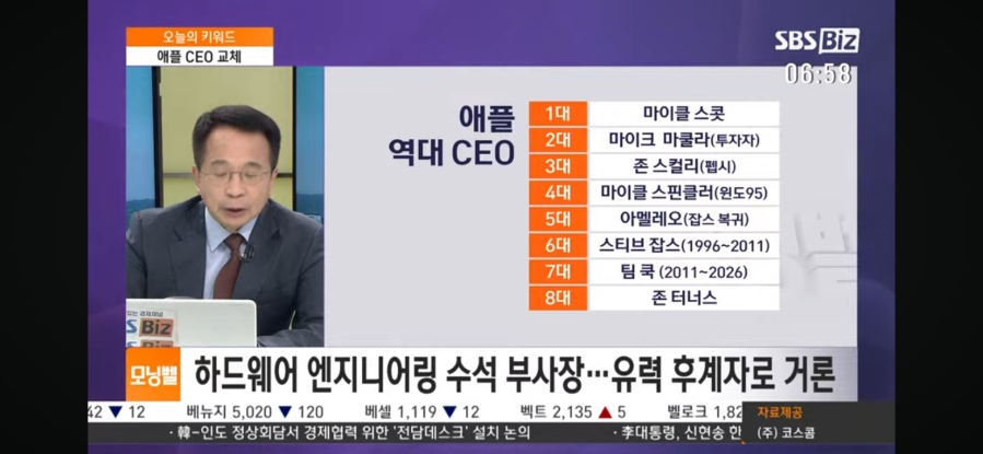 - 애플, 새 CEO에 존 터너스…팀 쿡은 이사회 의장으로