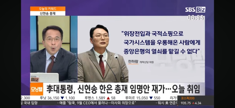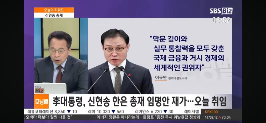 신현송 총재 임명안 재가 되었어요.