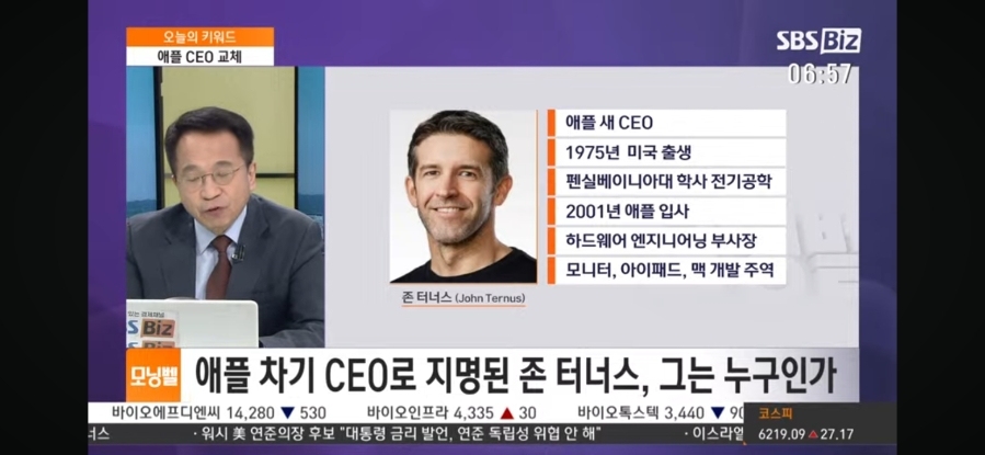 애플 CEO 교체 존 터너스 애플은 주인이 없죠. 15년만에 교체 됩니다 .펜실베니아 공과대학 출신으로 하드웨어 기술전문가 입니다. 팀쿡 최대의 심복으로서 기술의 방향은 큰 차이는 없겠지만 기술전문가로서의 활약을 지켜봐야 할 것 같아요!