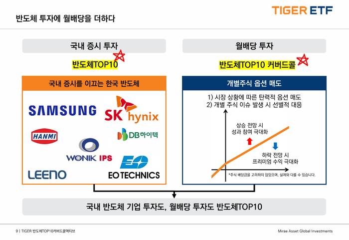 โTIGER ๋ฐ๋์ฒดTOP10์ปค๋ฒ๋์ฝ์กํฐ๋ธโ๋ ๊ธฐ์กด ETF์ ์ฐจ๋ณํ๋ ์ธ ๊ฐ์ง ํน์ง์ ๊ฐ์ต๋๋ค.