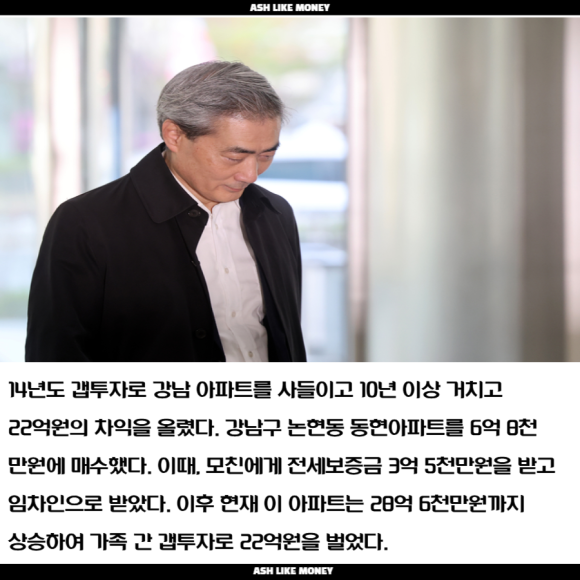 하지만 그런 정권의 성격과 달리 신현송 한은총재 역시 14년 갭투자를 통해 20억 이상의 차익을 올렸다. 정확하게 강남의 논현동 동현아파트를 14년도에 6.8억에 전세를 끼고 매수하였고 매도인은 친모이다. 친모는 압구정 현대에서 동현아파트로 갈아타고 11년 만에 넘긴 것이다. 현재 28.6억 수준이기에 20억이 넘는 시세를 올린 것이다. 문제는 전세가 끝난 후 모친이 무상거주하여 증여세 납부 여부에 대한 논란도 발생했다. 심지어 모친은 은행에 11억 이상의 예금을 가지고 있어 증여세를 낼 돈도 충분한데 왜 내지 않느냐는 의문도 생겼다.