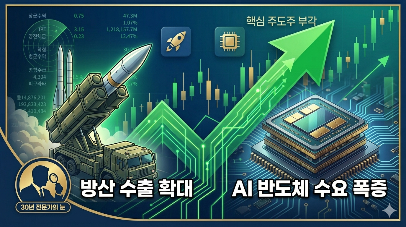 지수가 연일 역사적 신고점을 경신하는 상황에서는 무리한 진입보다는 관망하는 자세도 필요해 보입니다. 시장의 변동성이 언제든 커질 수 있으므로, 오늘 강세를 보인 방산주나 IT 하드웨어 등 실적이 뒷받침되는 섹터를 중심으로 관심 있게 지켜보는 것이 현명할 것입니다.