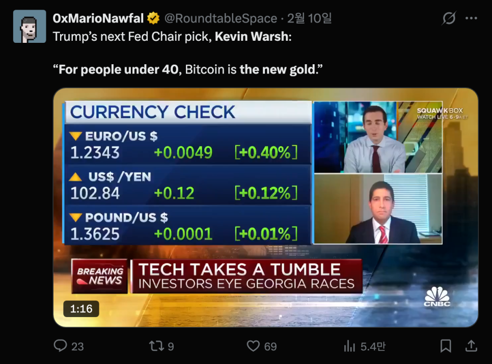 오늘은 시장을 뒤흔든 케빈 워시(Kevin Warsh) 연준 의장 지명자의 발언부터 중동의 긴장감, 그리고 코인베이스를 둘러싼 법적 공방까지 주요 이슈들을 하나로 엮어서 정리해 드리겠습니다.