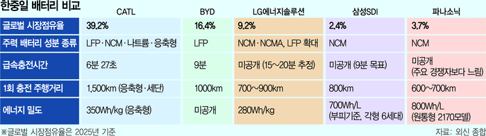 이날 공개된 성능은 업계 2위 비야디(BYD)가 지난달 발표한 블레이드 2세대 배터리(완충까지 9분)의 속도를 넘어선 것