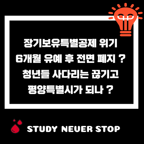 오늘은 장기보유특별공제 6개월 유예 전면폐지 1주택자 사다리 끊기다에 대한 포스팅을 마칩니다.