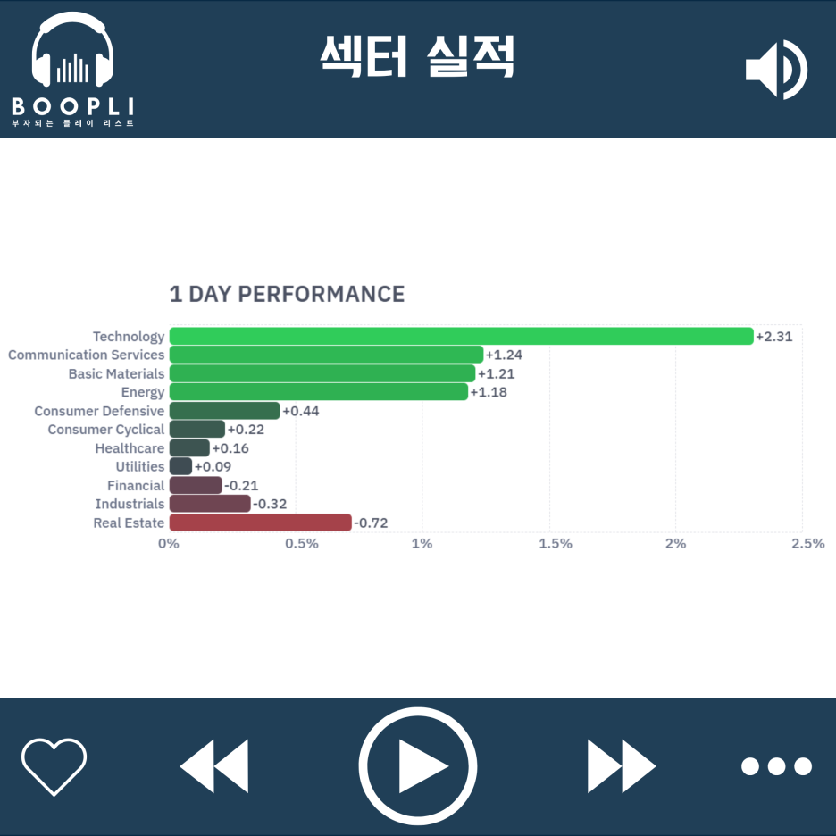 트럼프 대통령의 무기한 휴전 연장에 기술주가 상승을 주도했고, 이어서 커뮤니케이션 서비스, 원자재, 에너지 섹터도 강세