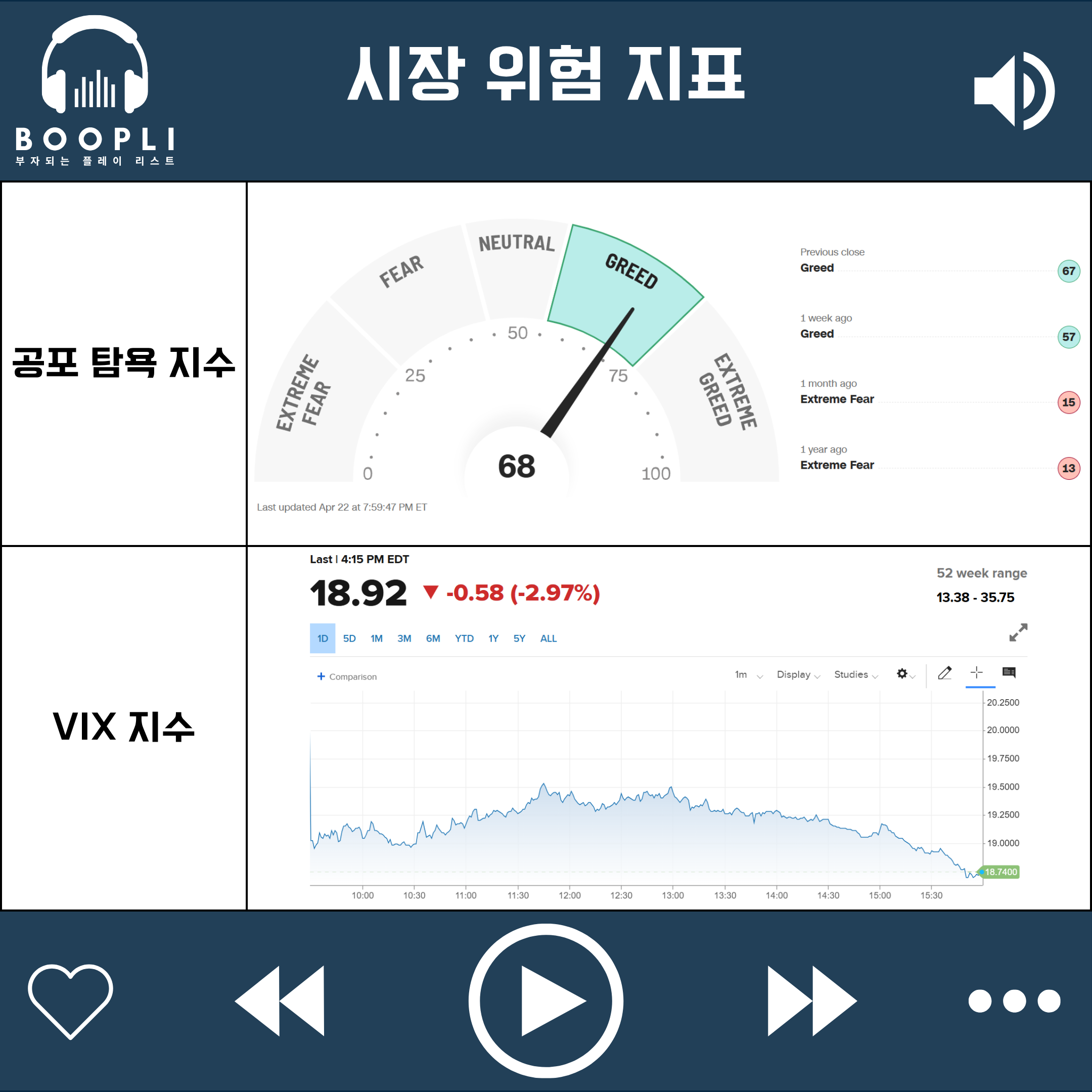 시장 변동성을 나타내는 VIX 지수는 하락하면서 변동성 완화