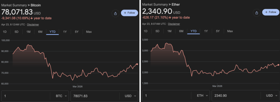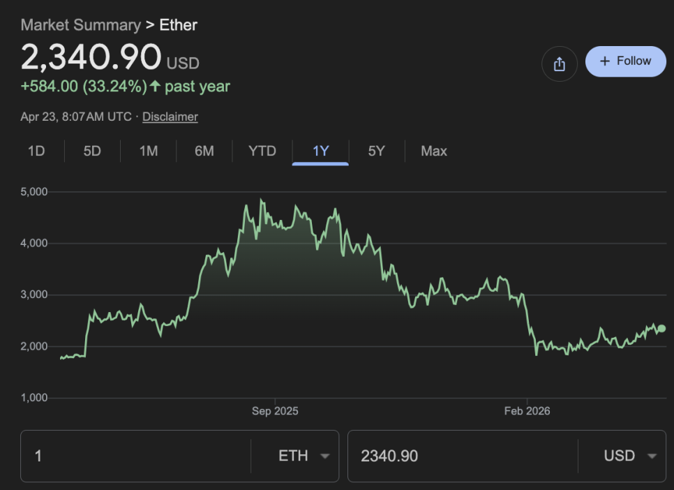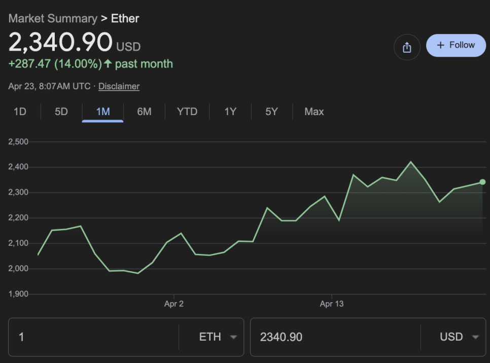이더리움은 지난 한 달간 약 14% 상승했습니다. 전쟁 중에 조정을 그렇게 겪지 않고 오히려 상승하는 모습이 인상적이었으나, 증시가 올타임하이를 찍는 과정에서는 오히려 다른 테크 주식들이 빠르게 회복하는 도중에는 생각보다 아쉬운 모습을 보여주고 있습니다.