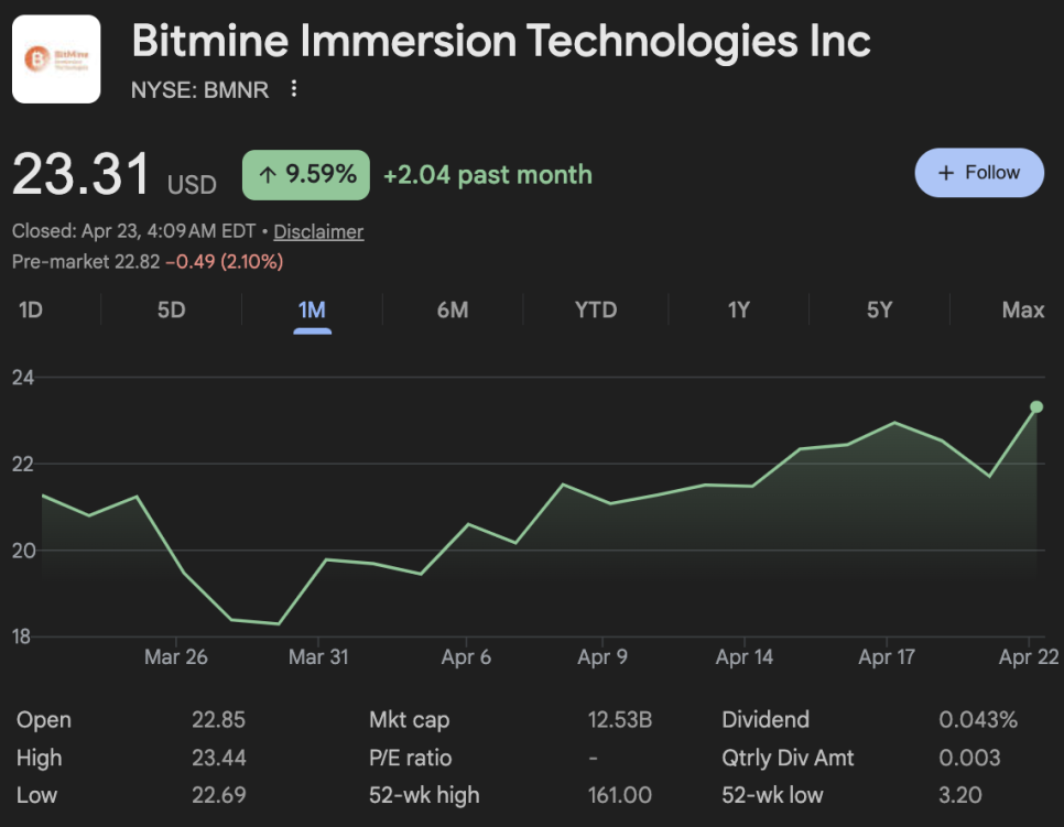 비트마인 이머션의 경우 지난 1달 간 약 10% 상승했으나 이더리움 상승률보다 못한 모습을 보여주고 있습니다.