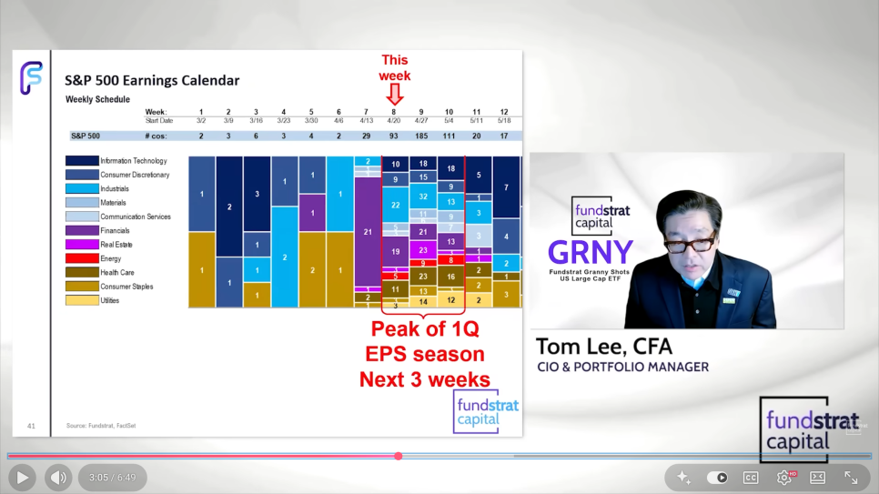 따라서 톰 리는 올해 중순쯤 새로운 의장이 자리를 잡는 과정에서 시장이 한 차례 크게 흔들리는 소위 '길들이기' 장세가 나타날 가능성이 매우 크다고 보고 있습니다. 마치 베어 마켓처럼 느껴질 만큼 매서운 조정이 올 수도 있다는 거죠. 하지만 이미 대형 기술주나 암호화폐 시장은 상당 부분 조정을 거쳤다는 점인데, 톰 리는 기업들의 실적이라는 기초 체력이 워낙 튼튼하기 때문에, 이 고비만 잘 넘긴다면 우리 생애에서 보기 드문 아주 강력한 상승장이 18개월에서 24개월 정도 뒤따를 것으로 내다보고 있습니다.