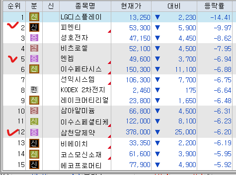매도 : SOL전고체배터리 코스모신소재 삼성SDI(+64.01%) 이수페타시스 호텔신라 우리기술 LG디스플레이 주성엔지니어링(+80.19%) 기가레인 LG화학 한전기술 산일전기(+50.65%) LIG아큐버(+106.61%) 현대글로비스 에코프로 CJ제일제당 우진 심텍(+61.31%) 엠플러스 레이크머티리얼즈 HS효성첨단소재 HD현대중공업 엔켐 LG에너지솔루션 두산로보틱스 엔젤로보틱스 이수스페셜티케미컬 Tiger미국S&P500타겟데일리커버드콜 KODEX미국AI테크TOP10타겟커버드콜