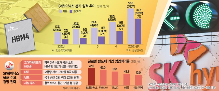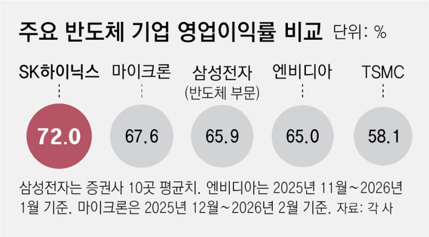 이는 동일 기간 대만 TSMC의 58%, 미국 엔비디아의 65%를 크게 뛰어넘는 수치로, 반도체 가치사슬 내에서 메모리 공급자의 협상력이 정점에 도달했음을 입증