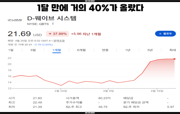 디웨이브 또한 인공지능 아이징과 결합하여 당장에 실무까지도 투입될 정도로 확신이 퍼져 엄청난 급등을 보였다. 디웨이브의 장점은 전력 소모량이 10kW 수준으로 매우 적다. 그래서 폭발적으로 사용될 AI 시스템에 매우 효율적인 대안 시스템이라 평가받고 있다. 이미 안두릴 인더스트리, 미 공군 미사일 방어 시스템 등 여러 상업 및 공공시설과 계약을 맺은 만큼 이번 아이징과의 기술과 더해지면 보안 기술이 더욱 단단해질 것으로 본다.