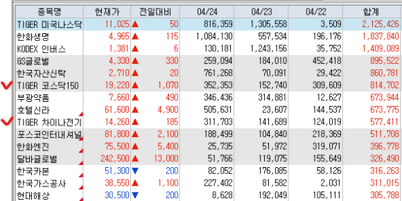 매수 : 맥쿼리인프라 KODEX200타겟위클리커버드콜 Tiger배당커버드콜액티브 Tiger반도체TOP10레버리지 Tiger반도체 Tiger2차전지TOP10레버리지 Tiger2차전지 SFA반도체 삼천당제약 Tiger코스닥150 Tiger차이나전기차 엔켐 KODEX삼성그룹