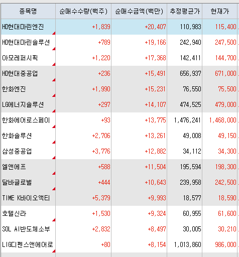국내 조선사들이 데이터센터 관련 신사업을 진행할 수 있다는 기대(선박엔진 활용)에 조선주가 상승(HD현대마린엔진 +19.71%, 성광벤드 +16.90%, 효성중공업 +12.15%, STX엔진 +11.26%, HD현대중공업 +4.68%)