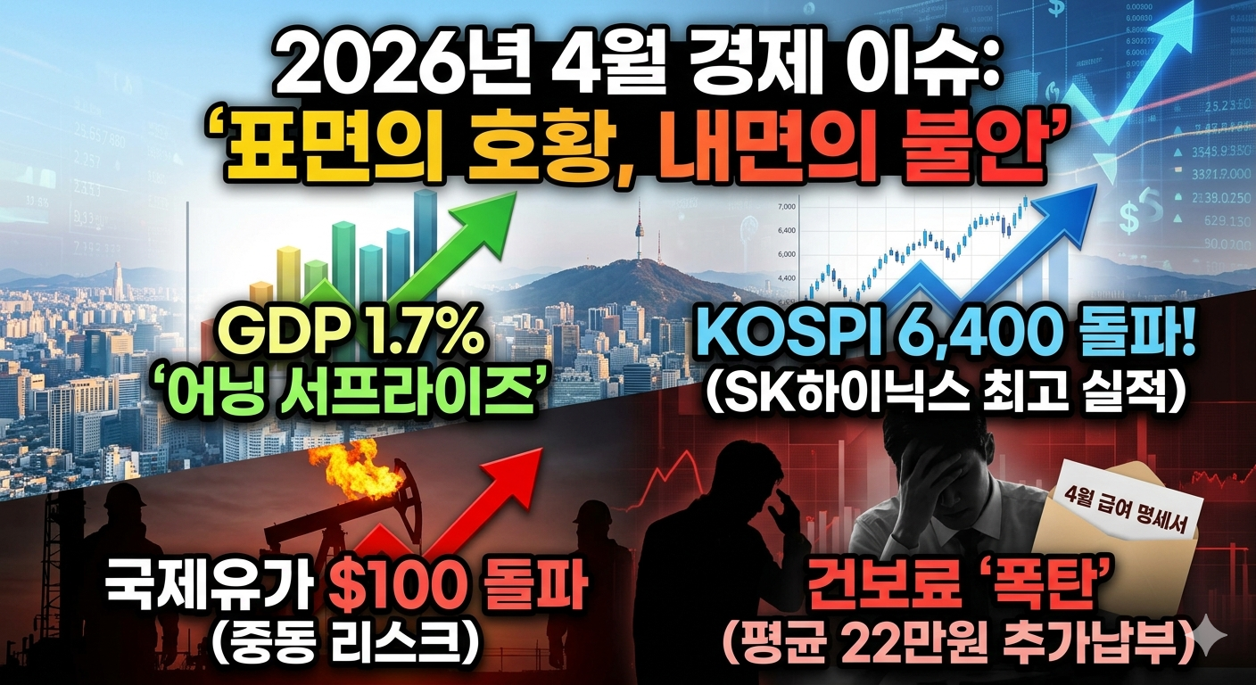 이번 주 한국 경제는 **'표면의 호황, 내면의 불안'** 이라는 이중 구도를 뚜렷이 보여줬다. 반도체 수출과 GDP 서프라이즈, 코스피 신고가라는 거시 지표는 청신호를 가리키지만, 고유가·건보료 충격·소비심리 악화·양극화 심화라는 구조적 문제는 하반기 경기 하방 리스크를 높이고 있다. 중동발 지정학 변수가 얼마나 장기화되느냐가 2분기 이후 경기 흐름의 최대 변곡점이 될 전망이다.