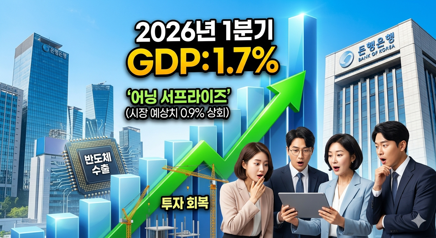 이번 주 가장 주목할 경제 지표는 2026년 1분기 실질 GDP 성장률이다. 한국은행이 발표한 수치는 전 분기 대비 1.7%로, 시장 예상치(0.9%)를 두 배 가까이 상회했다. 이는 2020년 3분기 이후 약 5년 반 만의 최고 기록으로, 분기 성장률로서는 매우 이례적인 수준이다.