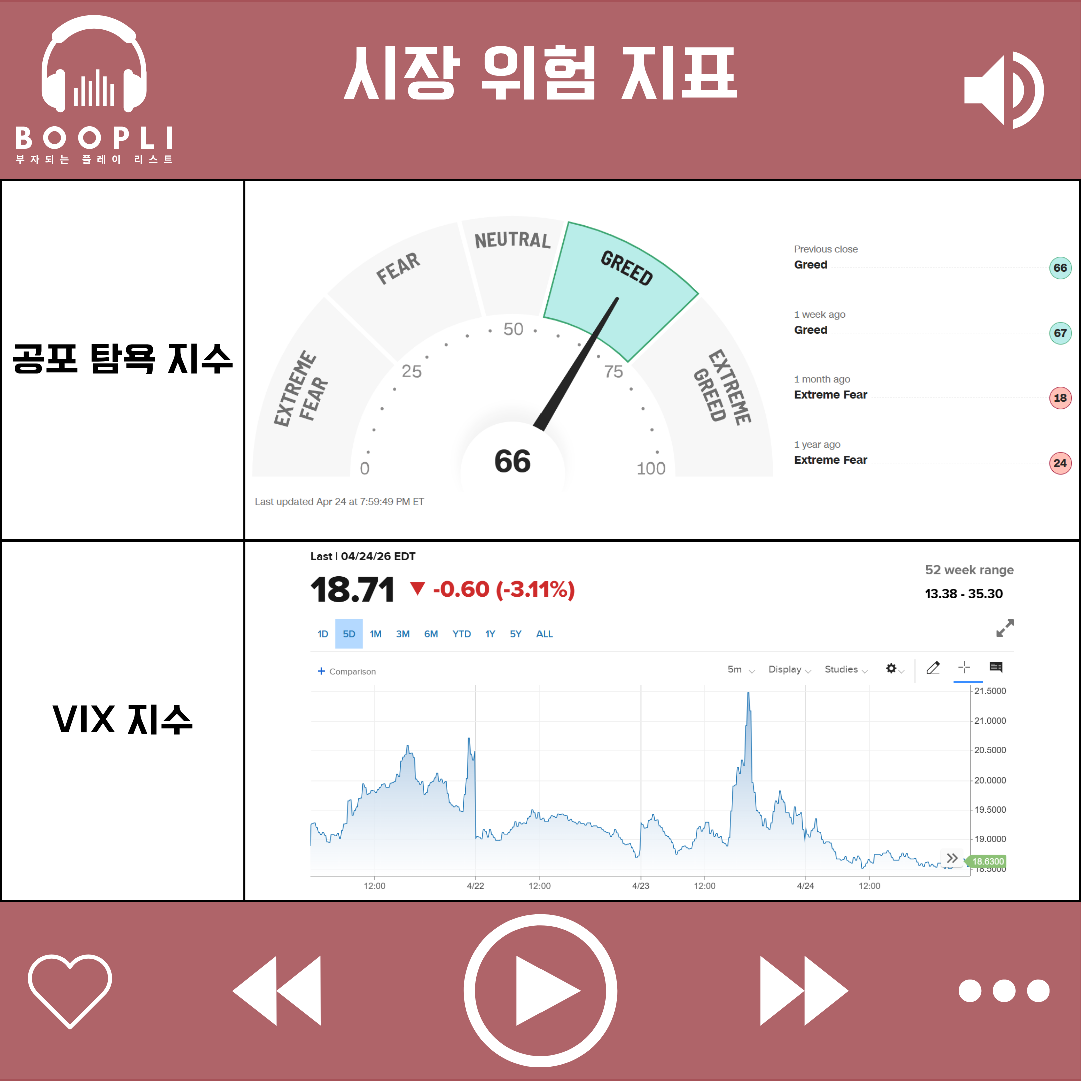 시장 변동성을 나타내는 VIX 지수는 1주일 전 대비 상승하면서 변동성이 확대되었다.
