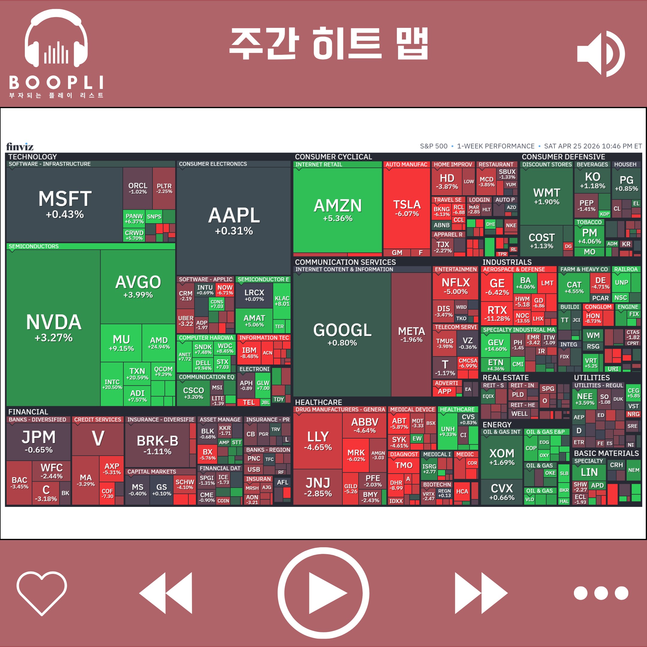 이번 주 미국 증시는 미·이란을 둘러싼 지정학적 리스크와 휴전 협상 기대가 반복적으로 교차하는 가운데, AI·반도체 업종의 강한 실적 모멘텀이 맞물리며 변동성 장세 속에서도 기술주 주도의 상승 흐름이 이어졌다.