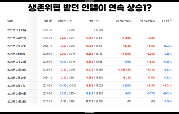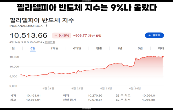 26년 4월 24일을 기준으로 속슬은 신고가를 달성했다. 역사적인 순간으로 반도체 섹터는 유례없는 대호황을 맞이했다는 것을 알 수 있다. 이번 속슬의 폭등에 가장 큰 영향을 미친 것은 인텔이다. 인텔이 정부의 지원을 받아 1분기 실적에서 시장 기대를 크게 넘어서며 프리마켓에서 27%나 올랐다. 이 덕분에 필라델피아 반도체 지수도 급등하여 반도체 종목의 매수 심리를 강력하게 유발하였다. 게다가 3배 레버리지인 만큼 올라가는 속도는 어마무시했고 단타를 좋아하는 사람들에게는 큰 수익을 안겨준 종목이다.