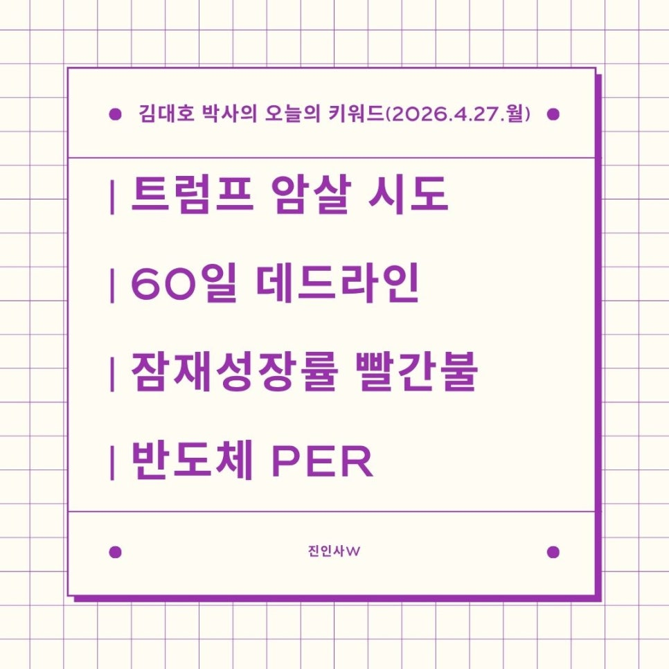 #김대호박사의오늘의키워드 #sbsbiz채널 #경제흐름읽기 #거시경제읽기 #세계주요이슈읽기 #한국경제주요이슈보기 #주식들여다보기 #부동산들여다보기 #시간은소중히쓰자 #트럼프암살시도 #60일데드라인 #잠재성장률빨간불 #반도체PER