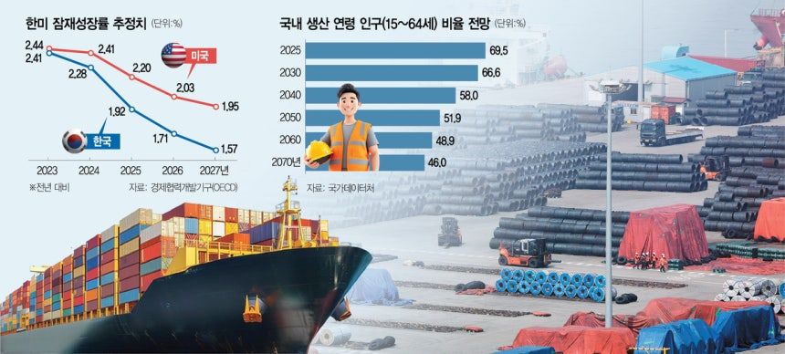 2027년에는 한미 간 잠재성장률 격차가 0.38%포인트까지 벌어질 것으로 예상되며, 이는 한국이 경제 규모가 훨씬 큰 미국보다도 성장 동력이 약화되었음을 시사