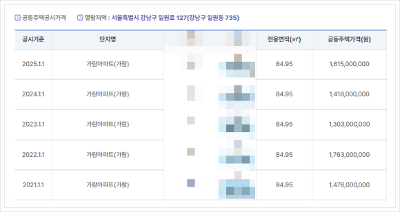 현재 거래된 매물은 27평이 25억 수준, 30평은 34억이라 평당 1억을 뛰어넘는다. 공시지가를 살펴보면 평당 6,200만원~6,800만원 수준이다. 그래서 평균 6,500만원으로 감정평가액을 계산했다. 감정평가액은 보정률 1.2~1.6배 중 1.4배하여 계산하면 평당 9,100만원이다. 총 조합원 종전자산평가액은 12,345억이다.